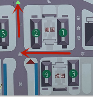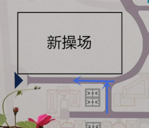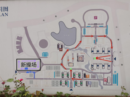 注释:绿色三角为20级起始集合地、绿色方块为20级结束集合地、红色箭头为20级跑操路线