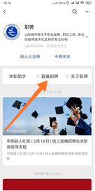 2、进入线上招聘会:进入公众号后点击中间菜单-线上招聘,即可进入会场;