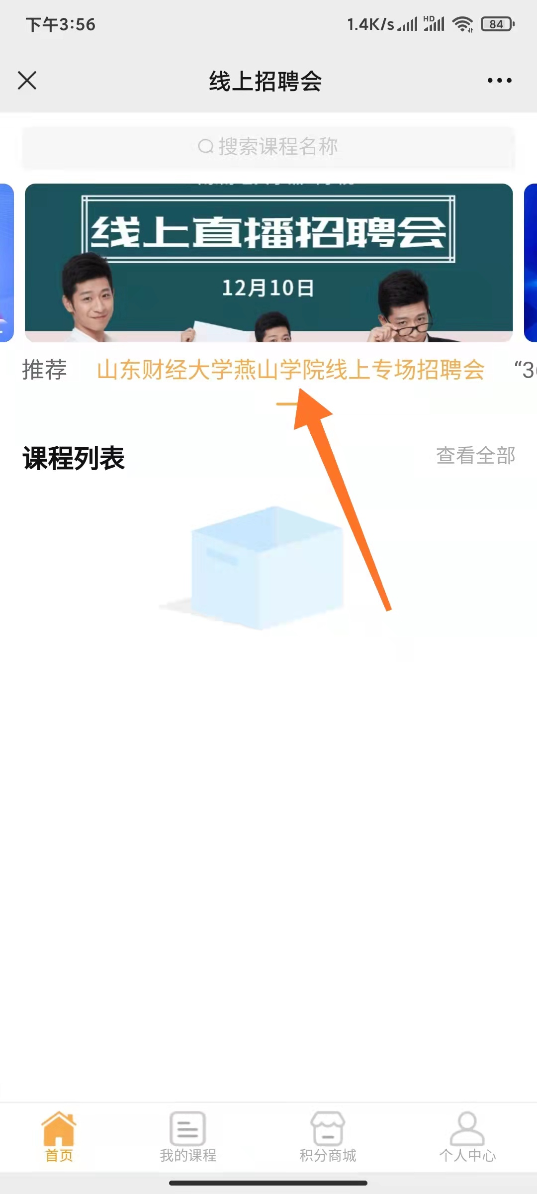 3、进入企业直播双选:点击山东财经大学燕山学院专场招聘会分组或轮播图片即可进去招聘专区,点击企业名称观看企业招聘直播,可在讨论区留言互动,按照企业要求投递简历,约定面试等。