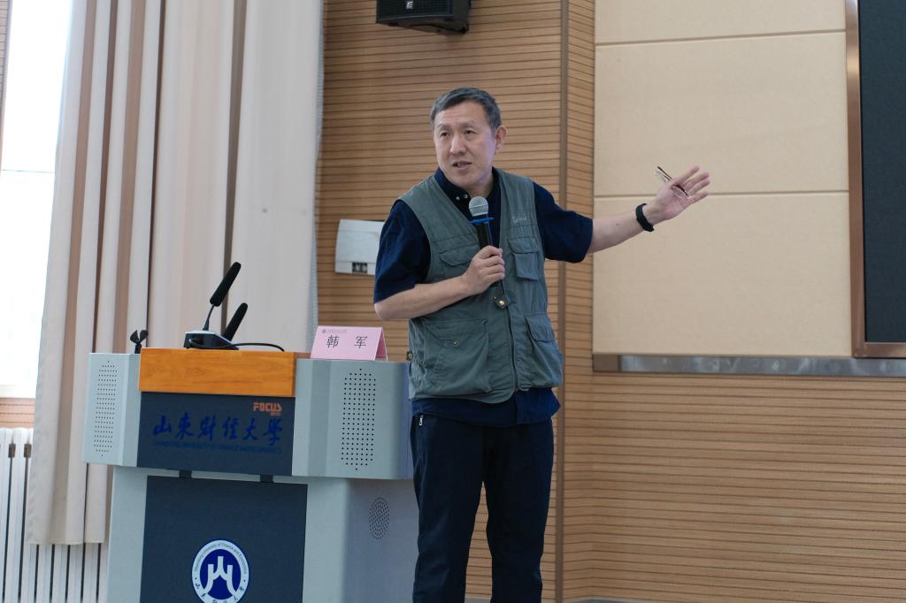 为满足学校师生对摄影艺术的热爱与向往,进一步提升学校宣传队伍的专业技能 ,5月9日下午,山东财经大学燕山学院于8106教室开展“捕捉瞬间,传递意义:新闻图片的价值内核与拍摄技巧”专题讲座。本次讲座特邀山东财经大学文学与新闻传播学院教授、硕士研究生导师、新媒体研究中心主任韩军做主讲人。院长邵文涛,学生处处长及对摄影感兴趣的师生参加活动。讲座现场座无虚席,气氛热烈。讲座由团委副书记王亚琼主持。