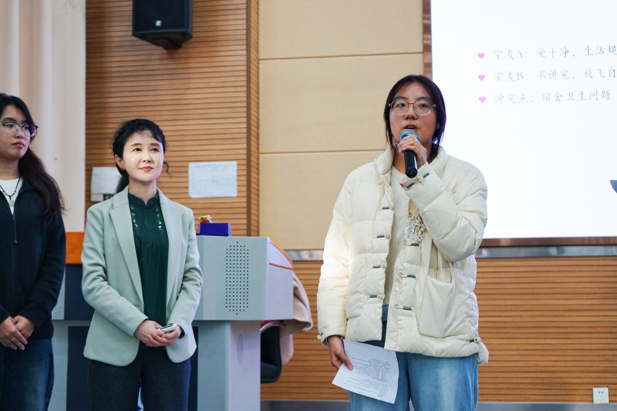 讲座尾声,丁老师通过情景模拟与角色扮演,让同学们现场感受不同沟通模式的效果。同学们踊跃参与、积极互动,在亲身体验中学习如何用“非暴力沟通”表达情绪与需求。