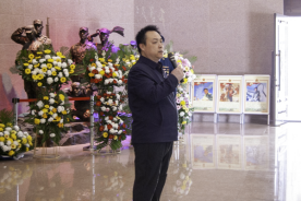 默哀仪式后,任传鹏院长发表讲话。他首先代表学院全体师生,向在莱芜战役中英勇牺牲的革命先烈致以最沉痛的哀悼和最崇高的敬意,深情回顾了先烈们为民族独立、人民解放抛头颅、洒热血的峥嵘岁月,强调今天的和平生活来之不易。随后,任传鹏院长对全体团员青年提出殷切希望:希望青年学子以先烈为榜样,坚定理想信念,锤炼过硬本领,将爱国情、强国志、报国行融入日常学习与成长中,以青春之我践行“请党放心,强国有我”的铮铮誓言。