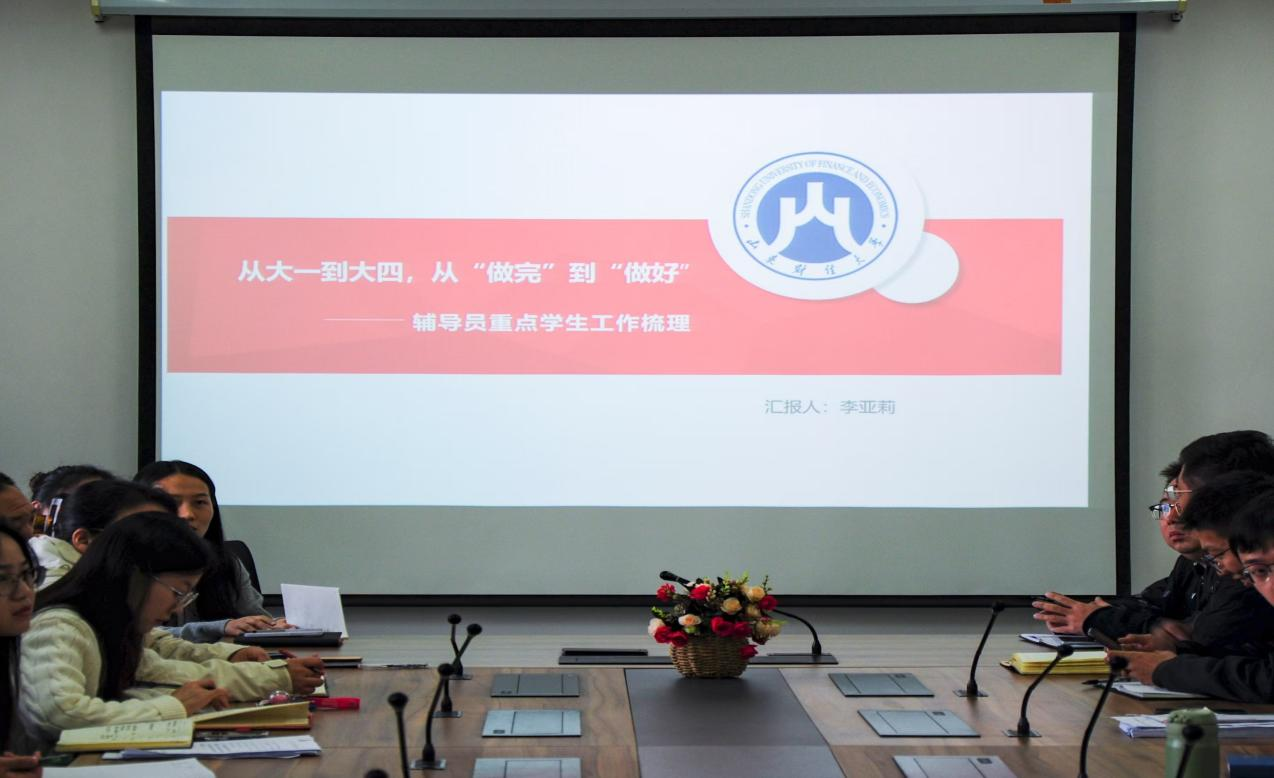 为进一步加强学院辅导员队伍建设,不断提升职业能力和专业素养,更有效地助力学生成长与发展。10月29日下午,山东财经大学燕山学院学生工作处在行政楼504会议室举办辅导员能力提升工作坊,特邀山东财经大学国际经济与贸易学院李亚莉老师作题为《从大一到大四,从“做完”到“做好”——辅导员重点学生工作梳理》的专题讲座,学生处处长巩治国担任讲座主持人,全体辅导员到场参加学习。