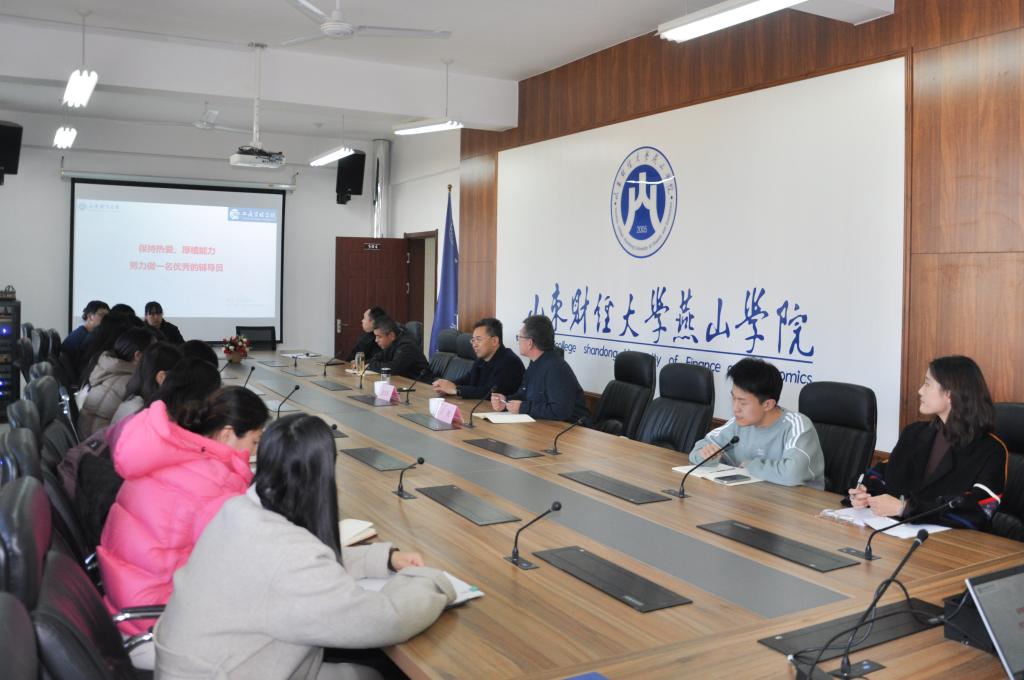 为强化辅导员团队之间的交流与合作,提升辅导员的专业素养和工作效能,进一步明晰学生工作的核心目标与发展方向,11月5日下午,山东财经大学燕山学院在行政楼504室开展辅导员能力提升工作坊。本次会议特邀山东财经大学工商管理学院党委书记赵世民参会指导,会议由正处级组织员王松主持,部分辅导员到场学习。