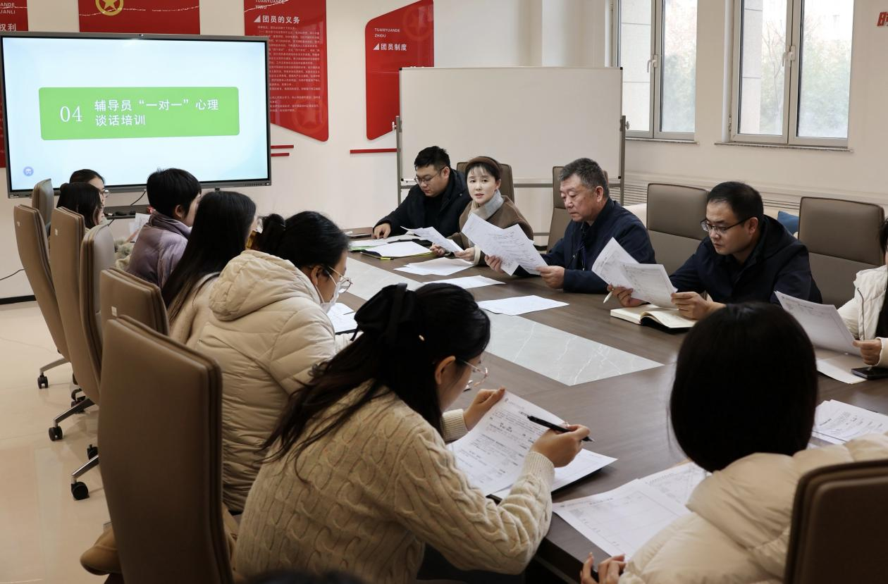 培训会上,学生教育科负责人刘宇鹏首先传达了山东省2025年大学生心理健康教育年会的核心内容及精神,重点解读了会上省教育厅关于强化高校心理育人主体责任、构建全链条心理危机防控体系的工作指示,明确了新学期心理健康教育工作的政策导向,并就我校大学生心理健康教育中心2025年度工作开展情况作了总结汇报。