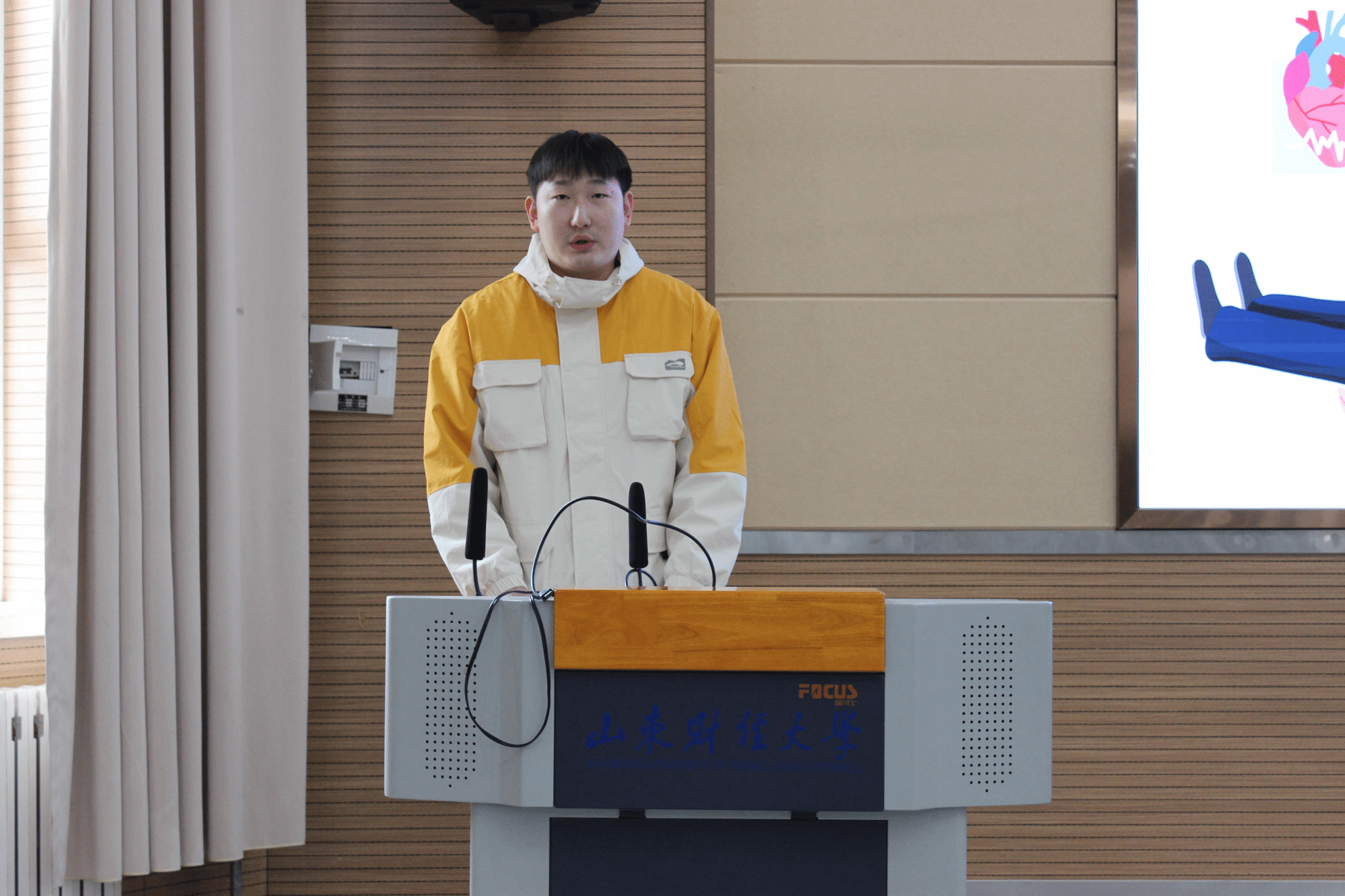随后,工商管理学院学生曲浩天作为学生代表登台分享。他结合自身勇敢施救落水女孩的真实经历,深刻讲述了急救技能在“黄金4分钟”内发挥的关键作用,并呼吁在场师生认真学习急救知识,努力成为关键时刻敢于出手、能够施救的生命守护者。