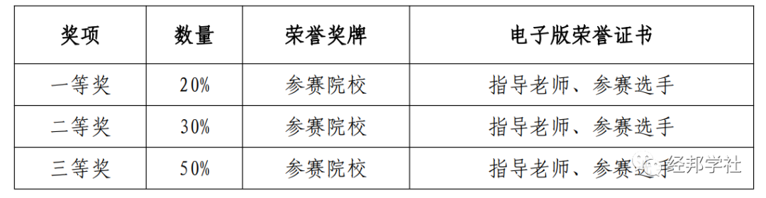 三等奖:各省参赛队伍数量的30%,参赛选手及指导教师均可获得由大赛主办单位颁发电子版荣誉证书。